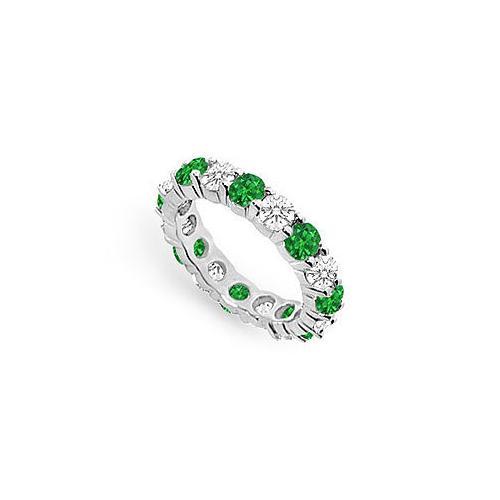 Lush-green emeralds alternate with brilliant-cut round diamonds in a 14K white gold prong-setting. This eternal circle symbolizes your never ending hope in life. This eternity band has a total gem weight (TGW) of 3.00 ct. Being a May birthstone; it makes a great gift for a May born.