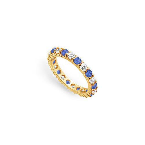 Celebrate your commitment & devotion with this endless circle of gems. Round intense blue sapphires alternate with brilliant-cut diamonds in a 14K yellow gold prong-setting. This eternity band has a total gem weight (TGW) of 2.00 ct. Being a September birthstone; it is an ideal gift for any September born.