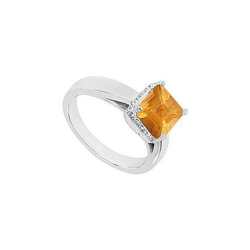 A square citrine is prong-set in the center and is enhanced by round brilliant-cut diamonds all around it. Made in 14K white gold this ring has a total weight (TGW) of 1.00 ct.